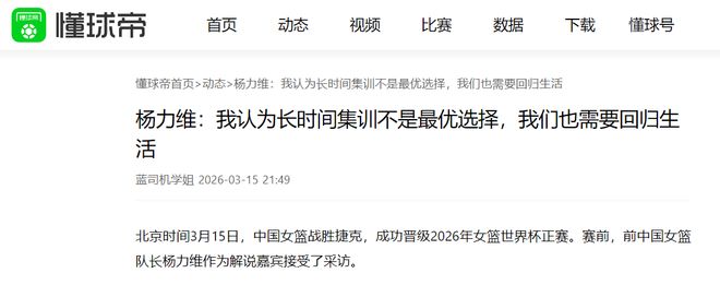 作为前女篮队长的杨力维,担任解说嘉宾时接受了采访,表示:“我们长时间的集训,我认为它不是个最优的选择,我们需要在一起磨合,但是我们也需要回归生活,我们需要有更多的时间打磨自己的个人技术,然后才是团队的组合,以及用高水平的比赛来检验训练。这样的一个过程是良性的,而不是一直持续让我们处于在一个封闭的、闭塞的一个状态当中。我觉得是在长时间的一个状态下是没有主观能动性的,也是缺少饥饿感的。”