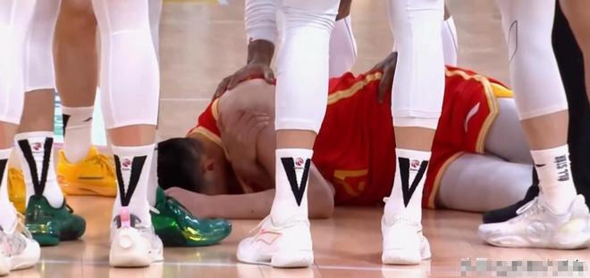 在球被夺走的同时,胡金秋也捂着左臂痛苦地倒在地上。