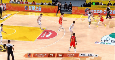 紧接着,宁波内线鲁吐布拉从胡金秋身后冲出抢夺篮球。