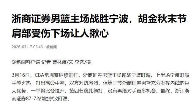 CBA再现暴力伤人!胡金秋惨遭卸胳膊,球迷:要毁了中国篮球吗